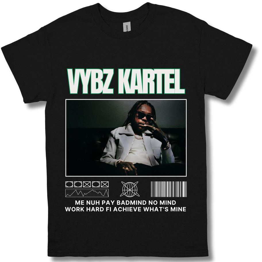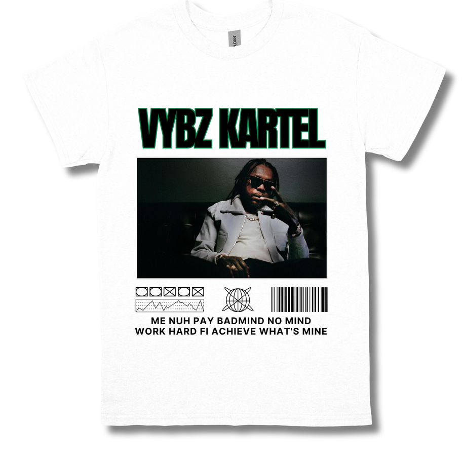 Each shirt features custom graphics inspired by the legendary Vybz Kartel.
